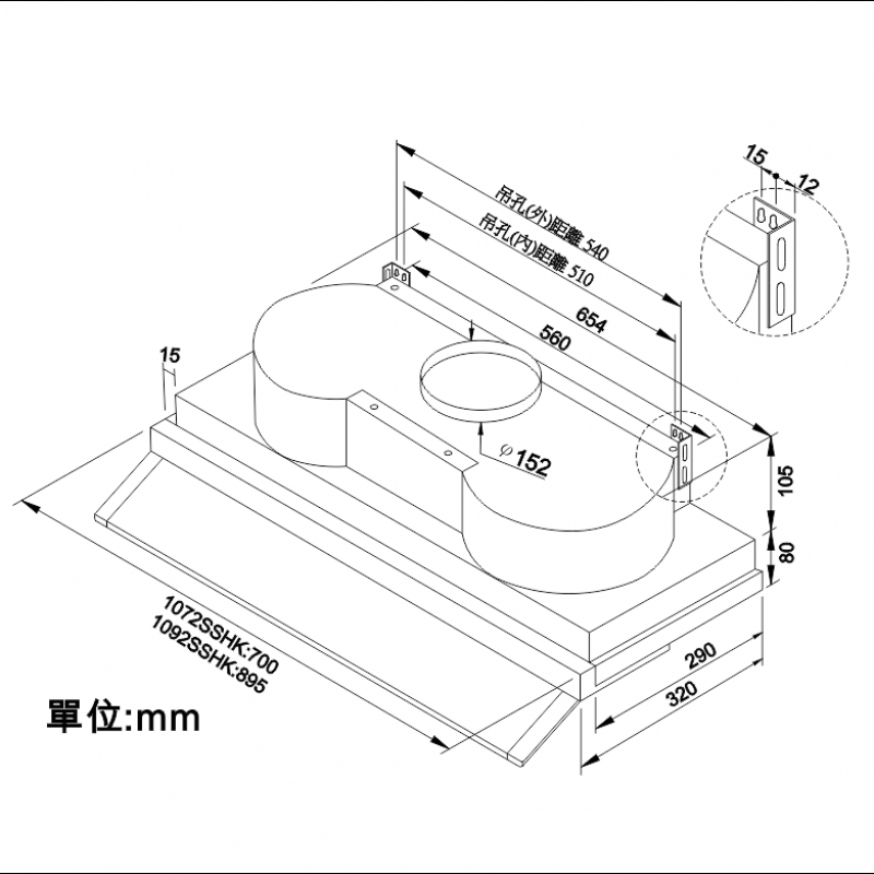 1072SSHK / 1092SSHK 隱藏式排油煙機